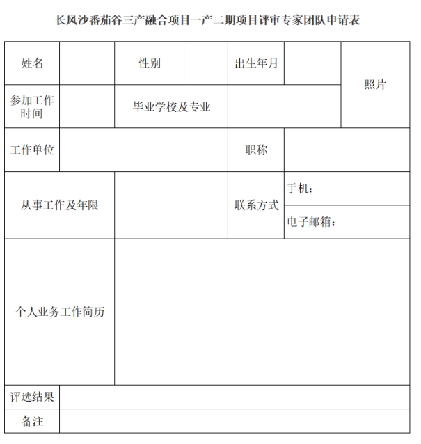 附件:1、《長風沙番茄谷三產(chǎn)融合項目一產(chǎn)二期項目評審專家團隊申請表》
