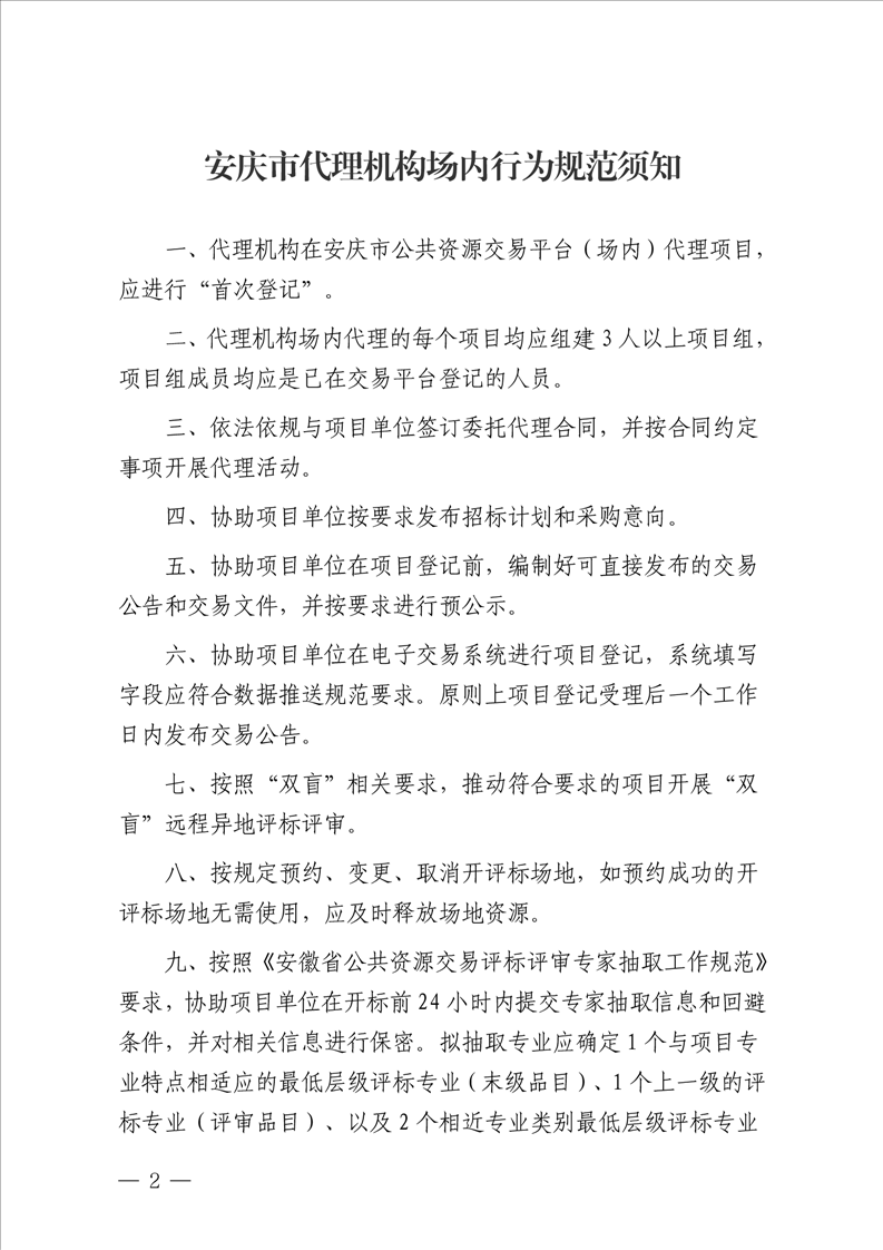 關(guān)于印發(fā)《安慶市代理機構(gòu)場內(nèi)行為規(guī)范須知》