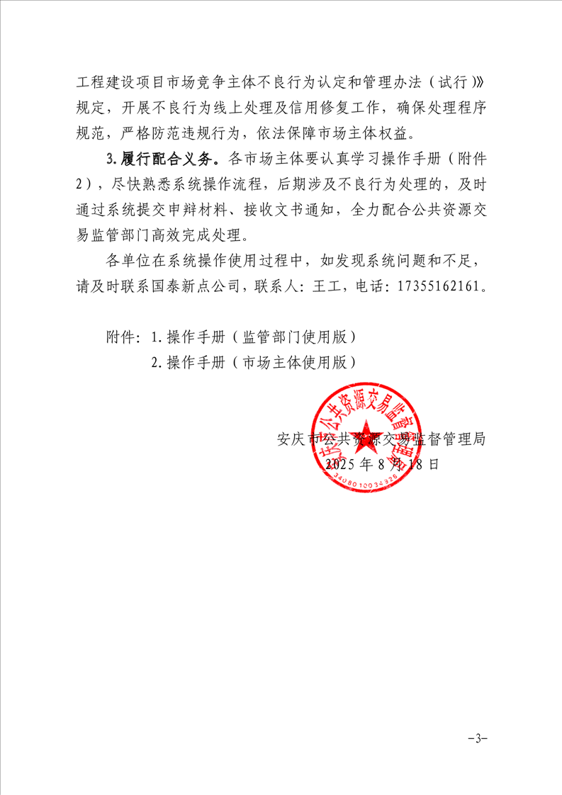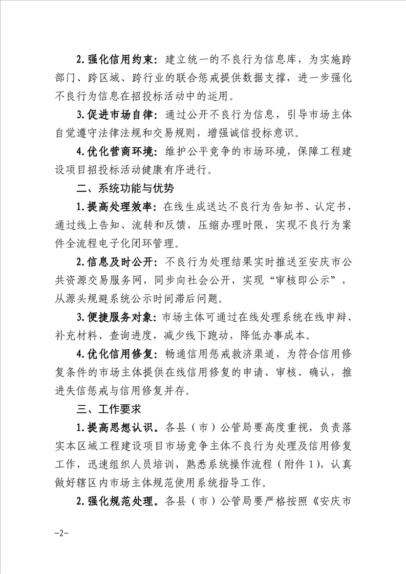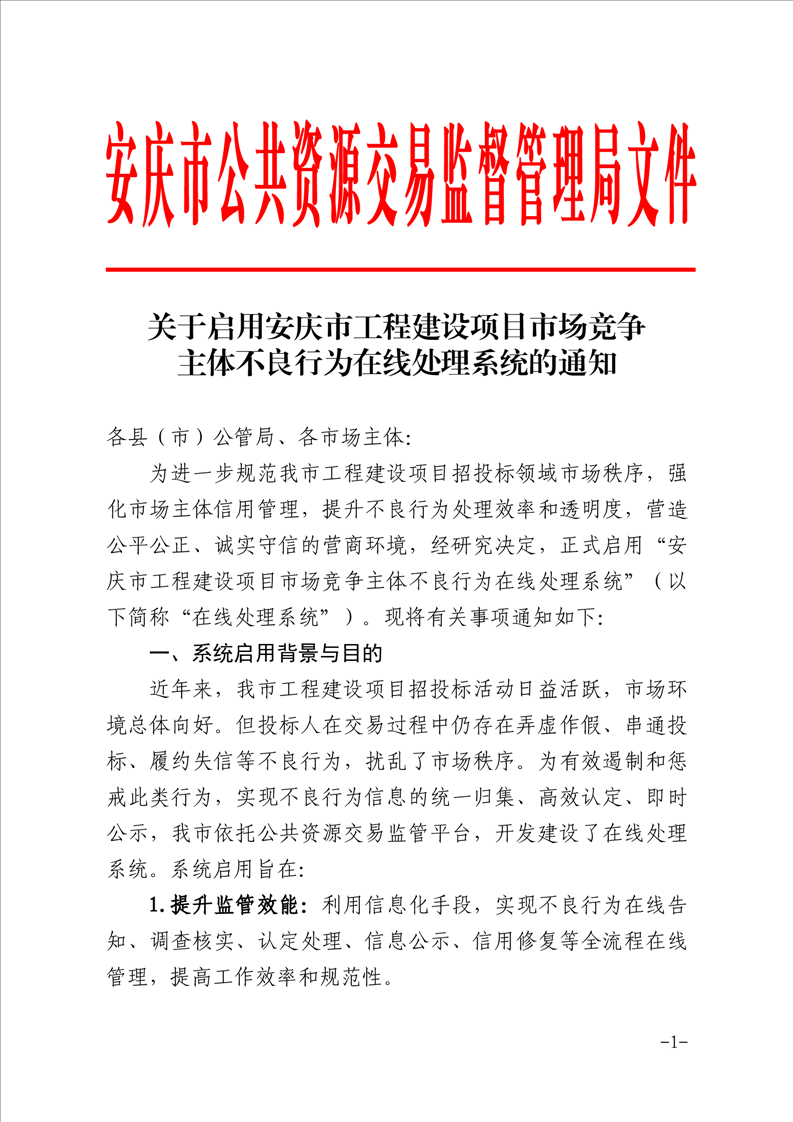 關(guān)于啟用安慶市工程建設(shè)項(xiàng)目市場競爭主體不良行為在線處理系統(tǒng)的通知